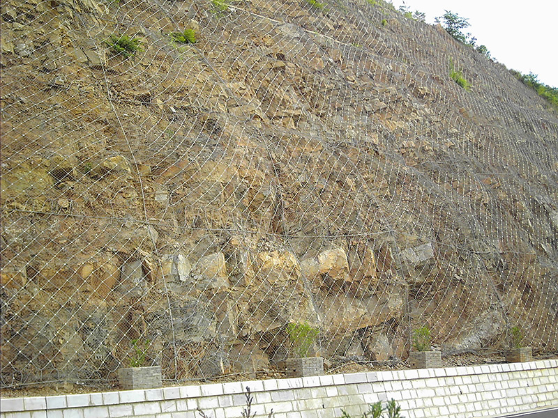 作用原理上类似于喷锚和土钉墙等面层护坡体系,但因其柔性特征能使系统将局部集中荷载向四周均材质:钢丝绳网、普通钢丝格栅(常称铁丝格栅) 匀传递以充分发挥整个系统的防护能力,即局部受载,整体作用,从而使系统能承受较大的荷载并降低单根锚杆的锚固力要求 。